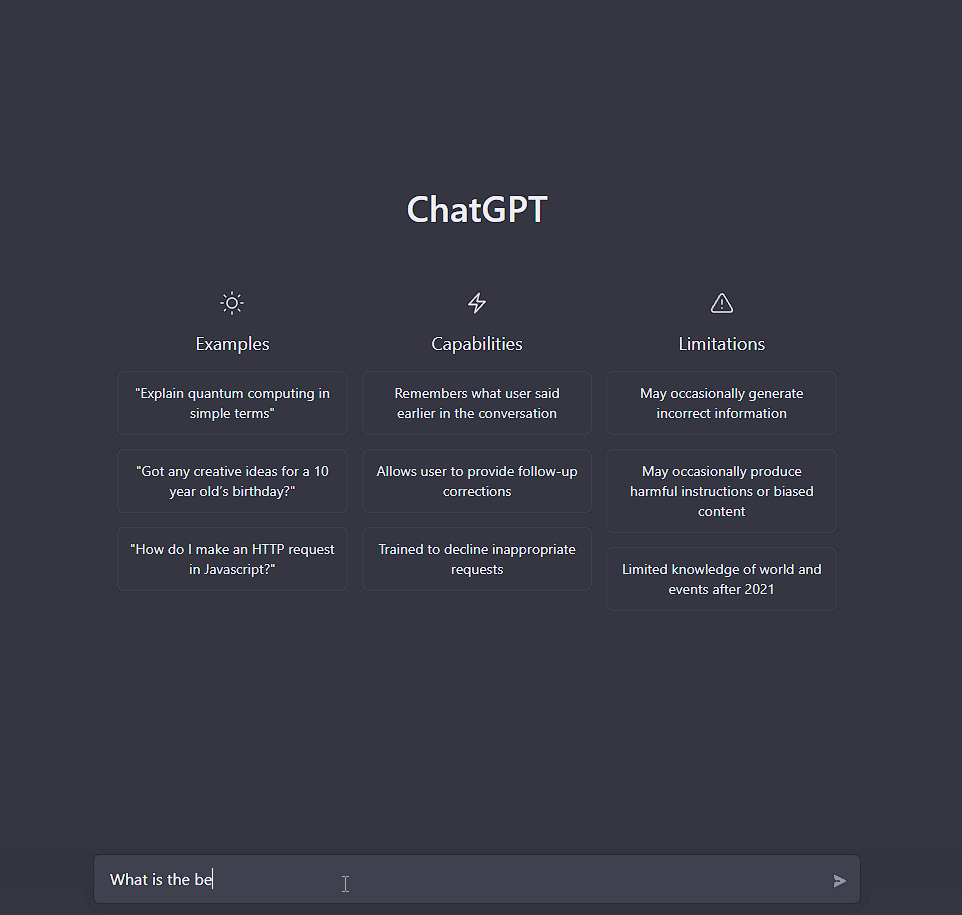 So ChatGPT is a large improvement of the previous GPT-3 model. It is based on the GPT-3.5 model. And let me tell you, this thing is pretty amazing. You can try it yourself as long as there is still beta access available to public for testing on the OpenAI’s site. For now it is still free, so give it a try, since in the future a pricing plan will probably be introduced.