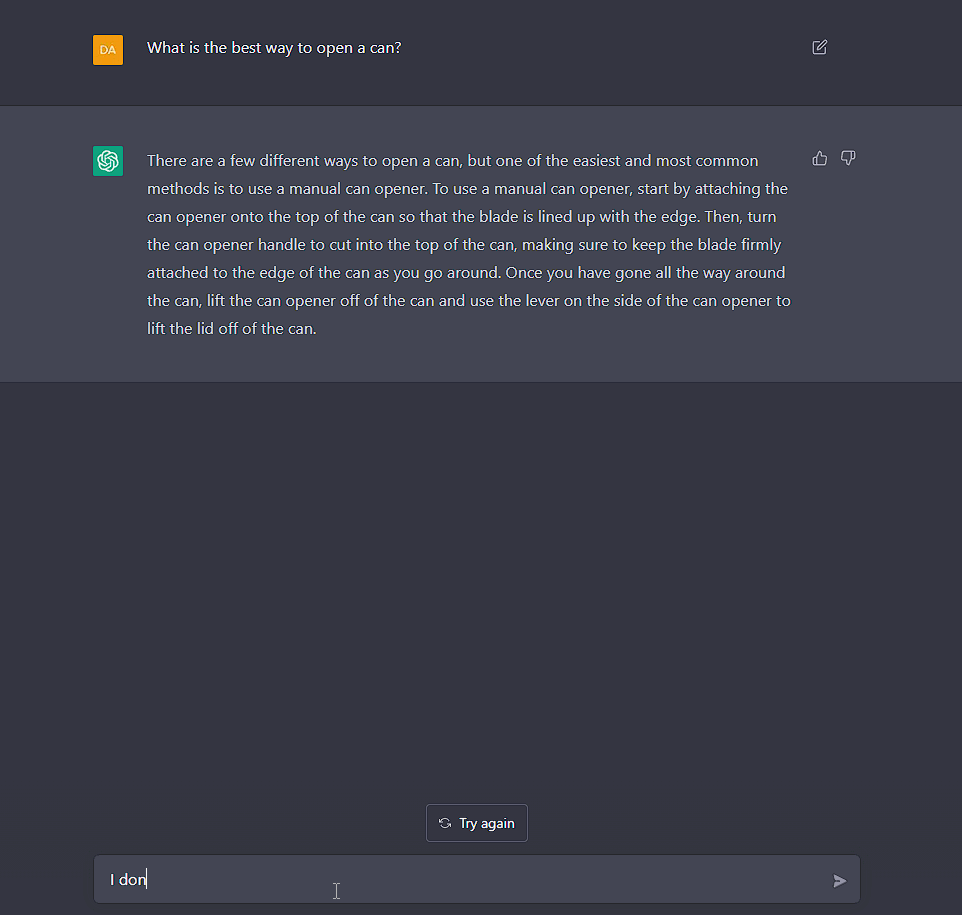 A cute short story. I don’t have much to more to say, the story looks interesting and creative. However one cool thing that can be done with the model is that after it has given an answer we can tell it to change things. For example I told it to change the cat’s name to Oscar and told it to make a different ending. It did just that. It changed the cat’s name to Oscar and changed the ending. The story took a turn after the cat got lost and instead of just finding it’s way back home, the cat find a cabin and spends some time there.