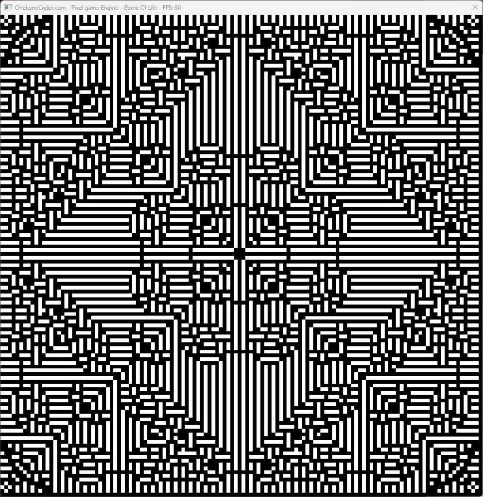 So I created a simple implementation in C++ that simulates the Game OF Life. You can however also define a custom set of rules by specifying them with the following format: B3/S23. This would be used to define Conway’s Game Of Life rules described above.