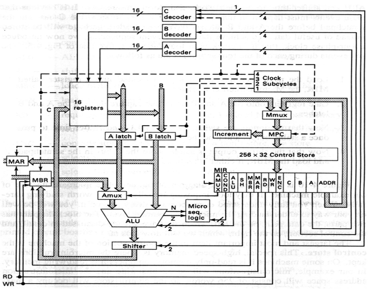 While reviewing the code and putting all the components together, I figured out that some parts of the components weren’t designed ideally. The main thing was that I did, was to make the components as similarly as possible to how they would work in an actual micro-architecture. For example, instead of creating multiple interfaces for ALU for different operations, I just created a method which sets the operation in the first sub-cycle of a simulation cycle. This way, an instruction can easily be converted to an action. I did the same with the shifter, the memory and all the other components. As per the HO diagram, we can see that in the first cycle all the instruction variables are read and transferred to the components, which tells them how to behave in this cycle. The registers class was also fixed among many other things – mostly in the spirit of consistent behavior across all components.