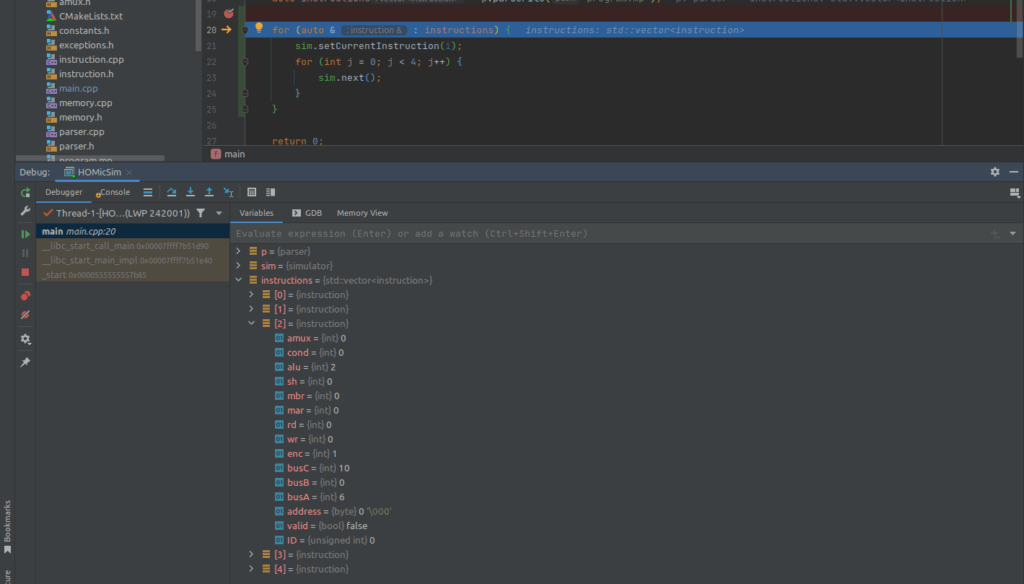 what(): Memory bus exception - you probably tried to read while writing or vice versa or set the MAR while the memory was busyAnd these are the instructions generated and returned by the parser: