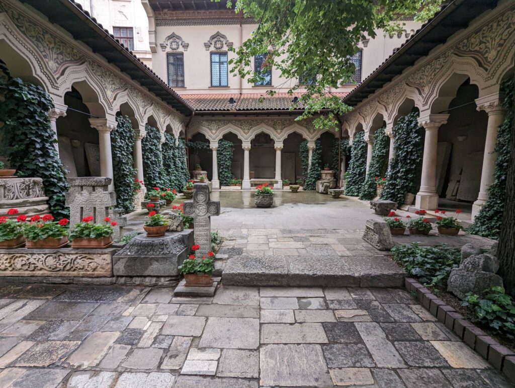Now outside the library, we headed towards the Stavropoleos Monastery. On our way there we were stopped multiple times and offered food and drinks – seems like we hit a tourist spot. But we craved other food – not grill or kebab. So we passed them as quickly as we could. The monastery is home to the largest collection of Byzantine music books in Romania. It is an Eastern Orthodox Church with a distinctive architectural style. I found these types of Romanian churches really interesting. The use of both wood and stone gave the buildings a warmer feeling compared to the stone castles and palaces I had seen before. And then came time for lunch.