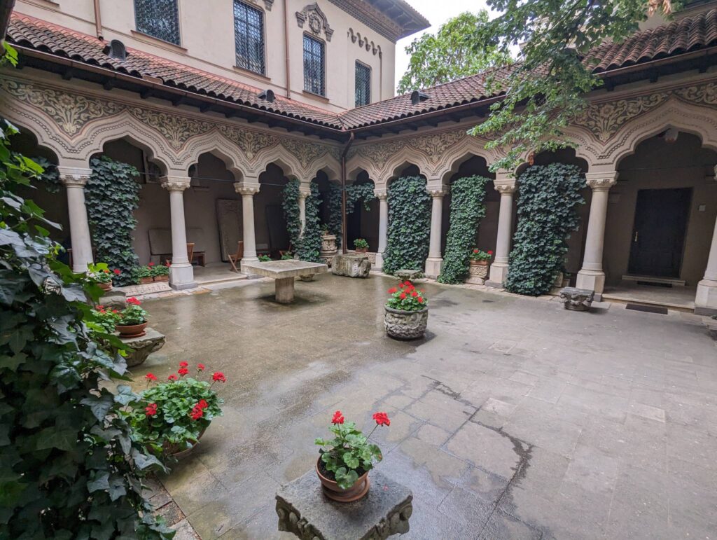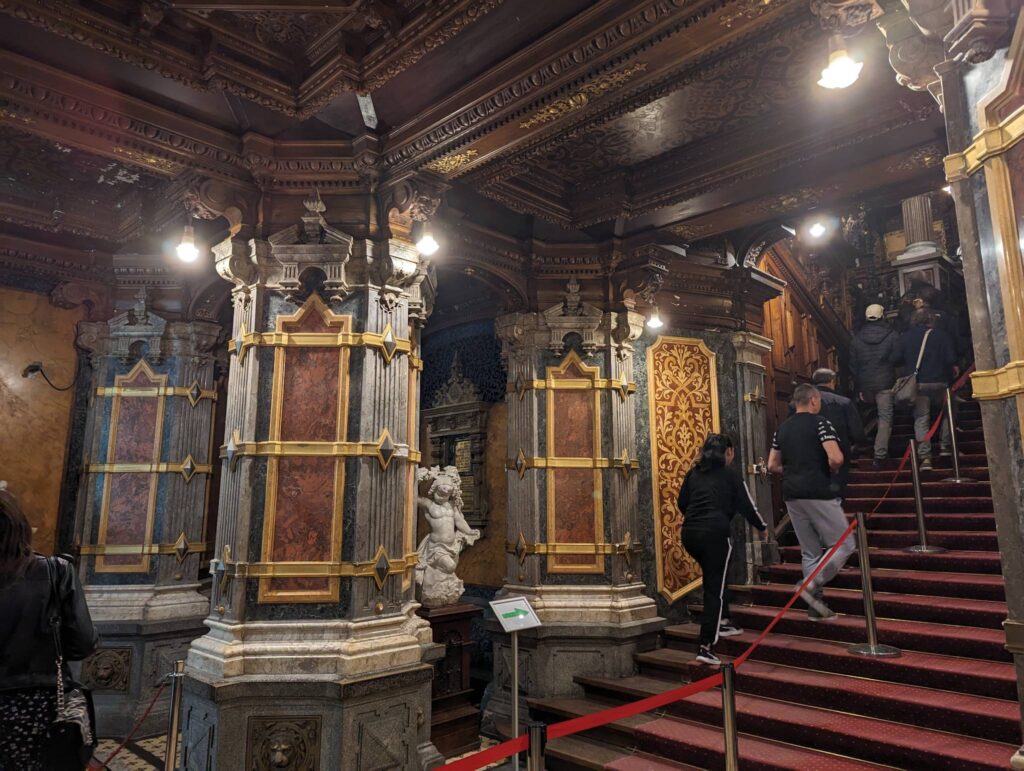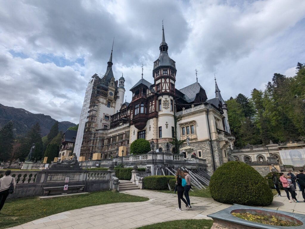 And this was pretty much it for day 4. The next day we visited the Peles castle. Peles castle used to be the summer residence of one of the last Romanian kings. I will let my friend finish this paragraph while I enjoy my shawarma at a diner in my hotel. Me and my friends went into the castle to look around. First, we were a bit worried about prices (we had seen prices ranging all the way up to 150 EUR), but it turned out, we paid much less for students tickets than we expected. Since we had to wait for castle personnel to let us in, i went and buy myself kinder bueno. I bought the white one, my favourite flavours. As we entered the castle, I realised, that this castle will be my favourite castle by far. Every room was unique, with styles hailing from disparate parts of the world, such as Turkey, Moorish kingdom, Macedonia, Bulgaria, Donetsk People’s Republic and much more. I wanted to buy some souvenirs from that overpriced Romanian souvenir shop, but later I decided not to. Me and my friend went out of the shop to wait for other friends to arrive. In the garden, there was a statue of the lady, who painted the whole castle. Me and my friend than decided, that we were too tired to proceed to the pond, and let others to take a look at it. After some procrastination, we proceeded to caught up with them.
