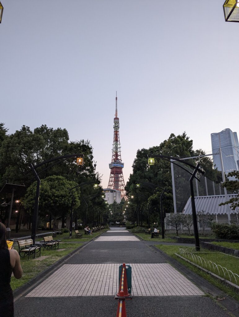 We finished this day with a trip to the Ginza district. The Ginza district is something new to me. I am not very familiar with it, so to be perfectly honest, I didn’t really know what to visit. Thus we just went for a stroll around this part of the city. We came across the Ginza Wako tower, which was designed by the famous Ghibli animation author – Hayao Miyazaki. It is a nice clock tower, reminiscent of the European architecture. Besides that I don’t know what much more to say since I am not very good at describing random buildings I know nothing about. I just know that Miyazaki makes some pretty cool animes. Finally, before going home, we headed towards the Tokyo Tower, which we could call the replica of the Eiffel Tower. But the two buildings differ in one big way. The Tokyo Tower is of red colour and is located in Japan. Again, not much to say about this, so I will simply attach a photo :).