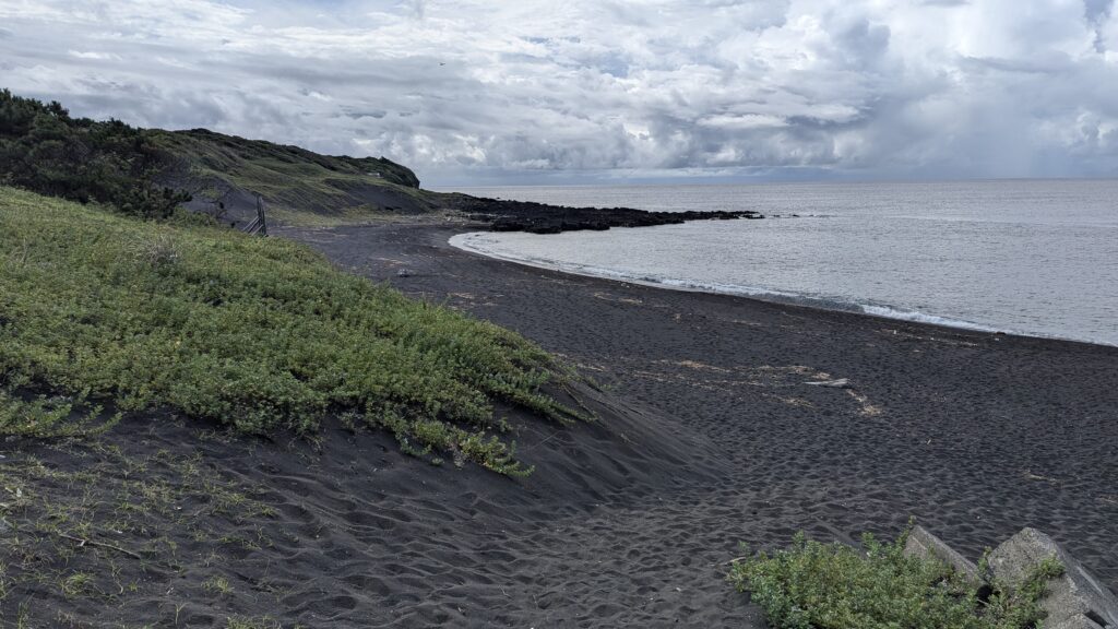 Next stop: a nearby sandy beach that was covered with black sand created from volcanic rock. It was my first time seeing such a beach. Quite astounding. Given such an opportunity, we decided to dip our toes in the Pacific ocean – the ocean that is shared with the USA. The water was pleasantly warm and the sand had an interesting texture. It wasn’t as small as the normal sand, but rather the grains were 1 or 2 mm in size. This made walking perhaps a bit unpleasant.