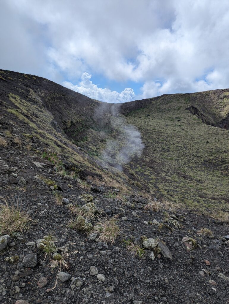 A new morning, a new start. It was decided that I would hike alone this day, since my cousin needed some rest. I woke up at seven and headed back to Motomatchi to rent a bike. After that I took the same route to the observation deck, where I would begin my hike to the top of the volcano. The weather was perfect that day. It was hot, but it was also cloudy and slightly windy. The breeze made the walk a lot more bearable and I was no more under threat of suffering a heat stroke. On the other hand, my skin got severely sun burnt. Later that day when I stepped into a hot bath it felt almost as if I was stepping into a fryer. Man, it hurt like hell. But today I am almost fine. However, not to get sidetracked too much, while hiking, I came across many old lava flows left from the many erruptions in the past. There were also many sings explaining everything about the volcano and I took my time reading all of them. The explanations were short and concise with lots of photo material, which made the read really interesting. I also read that the last erruption in the 80s was so severe that the entire population of 10000 people had to be evacuated from the island and the lava and debris reached an astonishing height of up to 1500 meters. I would love to witness such an explosion one day, but this volcano isn’t going to be it.