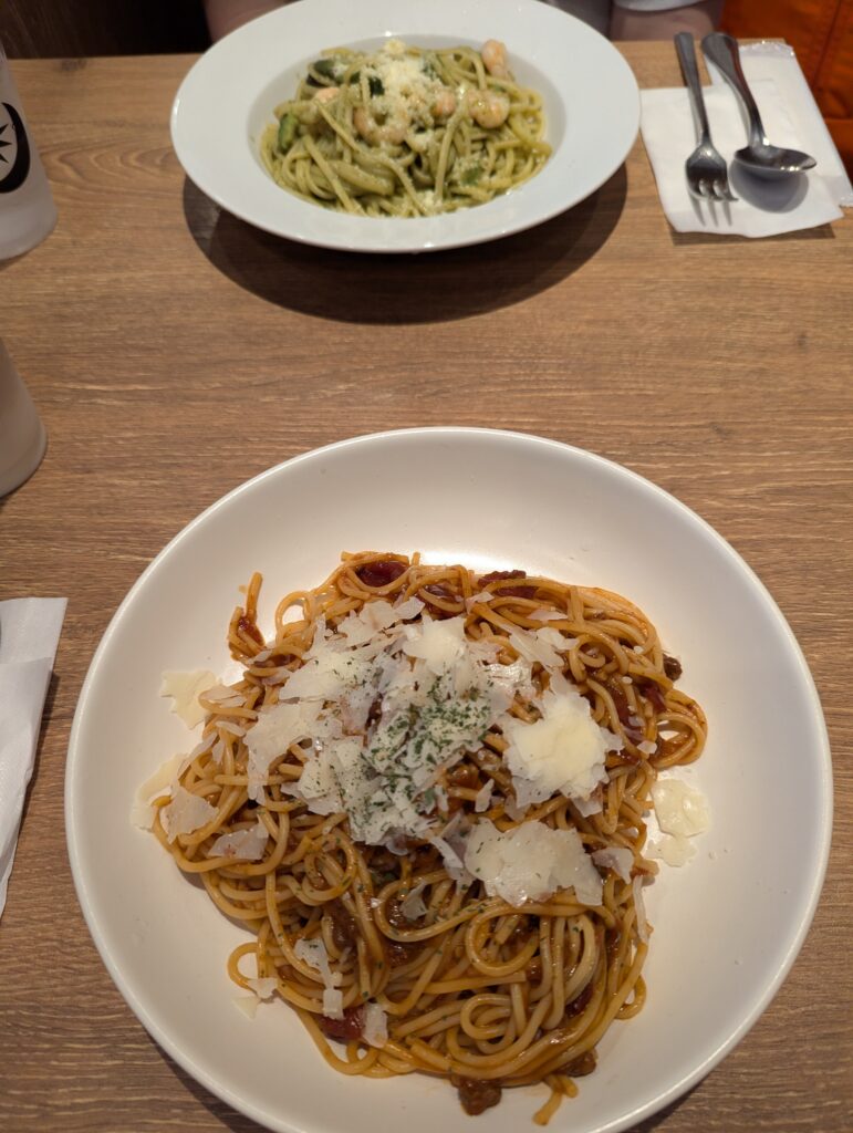 This morning however, our stomachs developed a bit of homesickness. I was longing for some spaghetti or some pizza. And so while walking around the train station, we came across a small restaurant that served pasta and morning tea. Everything according to the plan! I ordered bolognese pasta with some parmesan cheese on top, but I did not have high expectations since, to be fair, the pizza that I ordered here in Japan the last time was pretty meh. The Japanese have sushi, ramen and soba figured out, but European dishes don’t seem to be their strong suit. On the other hand, the dishes here might just be adjusted to the Japanese palate and that’s why I don’t like them. Whatever the case, I was hoping this pasta was going to be better. And better it was! The portion was just right, the tomato sauce was nicely seasoned and the pasta cooked just right. It wasn’t a Michelin star dish, but it satisfied my taste buds and gave me enough energy to continue with the day.