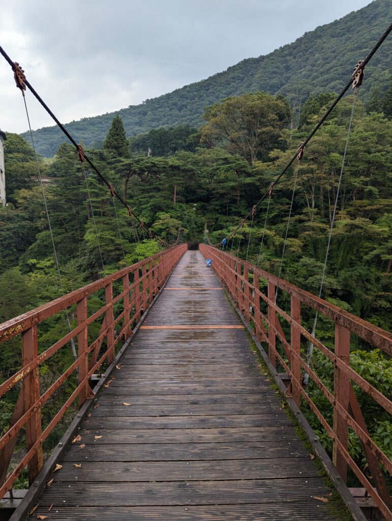 I looked down and realised it was blood. Quite a lot of it. I started wondering where and how the did I get hurt. Was it the spiders? Perhaps some kind of a plant? Wrong! Those bugs that I removed before? Yeah, that’s it, and those little bugs were leeches. It was my first time encountering this so I opened google and looked up leeches in Japan. Turns out they are pretty common in this area and that they can be quite annoying and potentially dangerous – sort of like ticks. Another look down and my socks were bloody as well… Those bugs even sucked my blood through a sock? To be fair, it didn’t hurt me at all, but the sight of bloody socks did not make me feel that great. I wanted to shower myself somewhere to at least clean the blood from my legs and perhaps clean the socks a little bit. But I wasn’t in luck, this town did not have any onsens. However, a town higher along the valley named Kawaji did. So I decided I would board a train to this town and at the very least take a shower there.