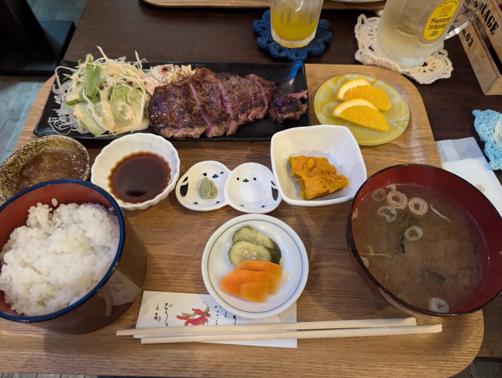 The onsen itself was pretty basic. It had showers and two open-air pools. The primary demographic of this onsen seemed to be grandpas conversing about their summer vacation, climbing nearby mountains and driving around in their small cars. This meant I stood out quite a bit. They didn’t seem to be used to foreigners coming to an onsen in such small towns. To be perfectly honest, I haven’t seen a single foreigner while this entire day. This is also one of the reasons why I love coming to smaller, unknown villages and towns – to experience the life of locals better and to learn more about their culture. This was also the case this time around. After soaking in the onsen for around an hour I returned back to the reception. Since it was already afternoon, I was getting pretty hungry.