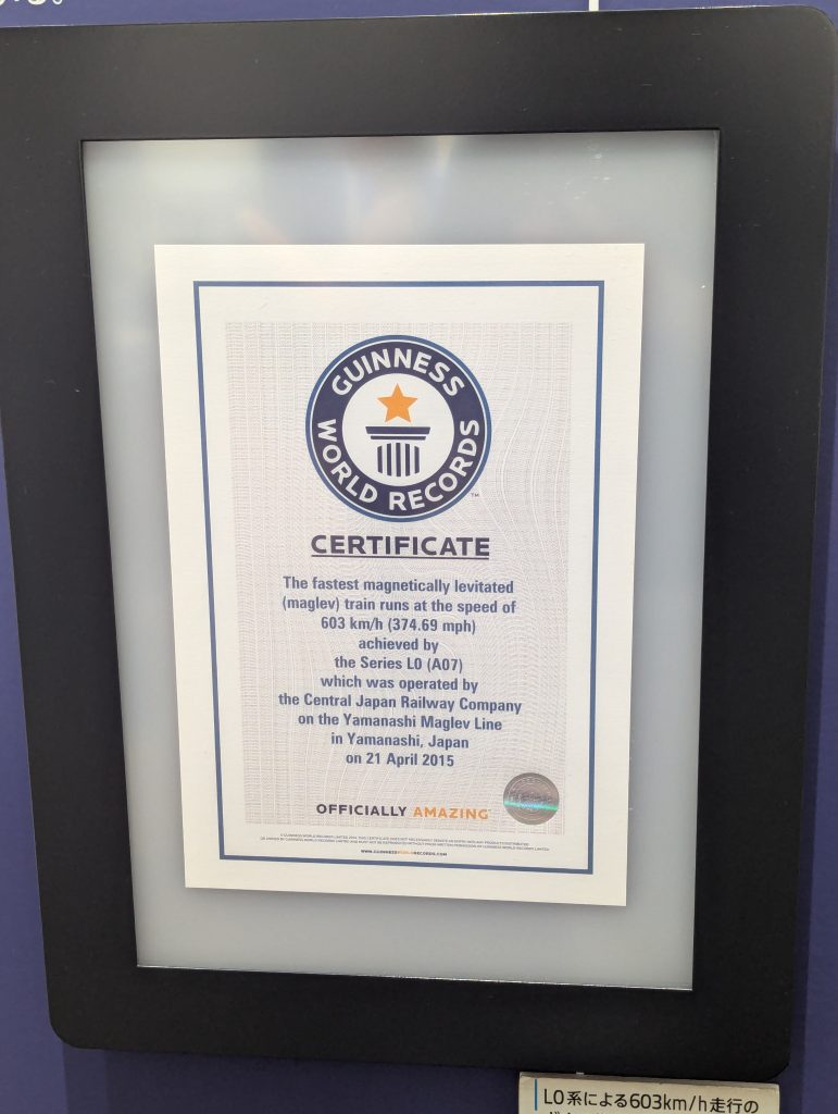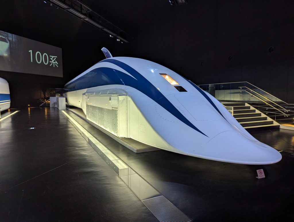The next day wasn’t boring either! I visited the SCMaglev and Railway Park. SCMaglev is the Japanese levitating train that is being developed on the Yamanashi test track (which I hope to visit). Its development goes all the way back to 60s. Japanese pioneered the research of maglev trains. Today the second prototype train is being tested almost on a weekly basis, and it is estimated that the track between Tokyo and Nagoya could be built by 2034, though there have been a lot of bureaucratic problems slowing down the construction of this track. The total project cost is estimated at around 82 billion USD. The travel speed of this train would be around 500 km/h, and the travel time from Tokyo to Nagoya (286km) around 40 min. A pace that even beats the fastest airlines!